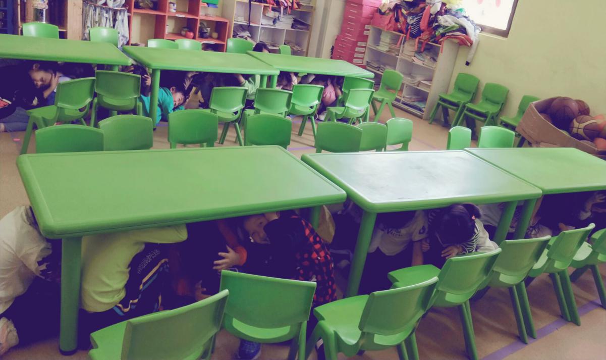 下午2點(diǎn)30分,隨著一陣急促的鈴聲,演習(xí)開始了。孩子們在老師的引導(dǎo)下,紛紛選擇桌子、廁所管道等地方進(jìn)行躲避,“抱頭”、“閉眼”、“蹲下”,老師們不時(shí)的提醒著孩子們。兩分鐘后,緊急鈴聲再次響起,孩子們在老師的帶領(lǐng)下,快速有序地經(jīng)過安全出口,撤離到安全區(qū)域。