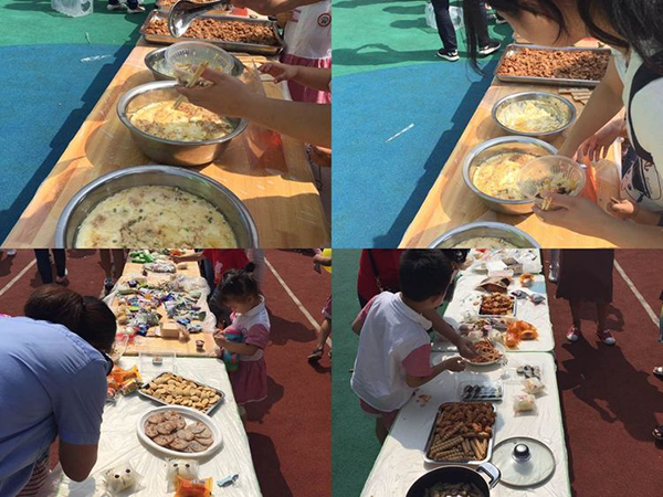 當天,家長們牽著寶貝的手,帶著自備的美食,早早地來到幼兒園,活動還沒有開始,濃郁的節(jié)日氣氛就已經(jīng)彌漫開來。