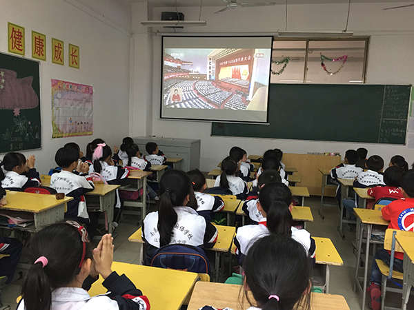 2017年10月18日,世界矚目的中國共產(chǎn)黨第十九次代表大會召開了。南昌現(xiàn)代外國語象湖學(xué)校組織全校學(xué)校師生觀看了黨的十九大開幕式電視實況直播。
