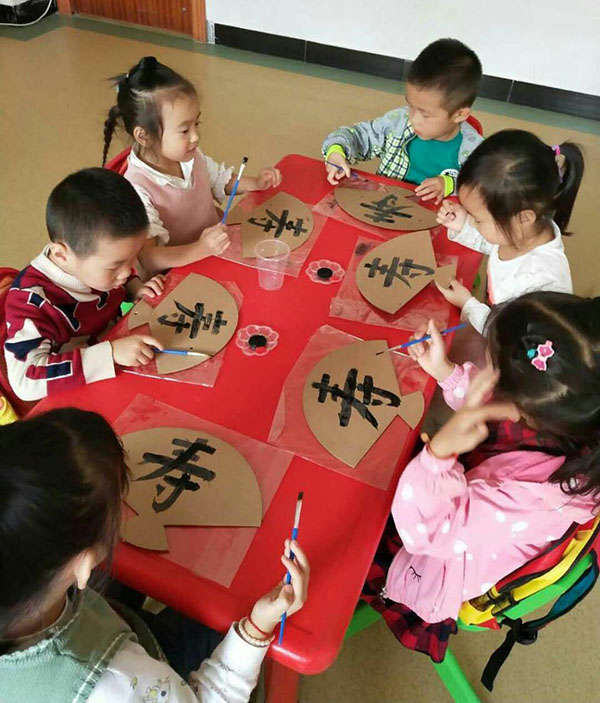 大班的小朋友們親手制作了壽字卡片,有的班級(jí)則是讓小朋友寫完壽字然后讓老師擺在地上,擺出壽字或者扇子的形狀;中班的小朋友則親手剪了壽桃卡片,老師在紙上畫好壽桃并叫小朋友把壽桃剪下來(lái),最后由老師把壽桃黏在教室后面的展板上;小班的小朋友們師的組織下,回家給爺爺奶奶捶腿、捶背、捏肩、洗腳,引得爺爺奶奶們一陣歡笑。