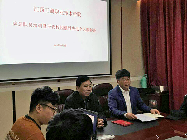 2017年11月1日在行政樓第一會(huì)議室,學(xué)院召開了應(yīng)急隊(duì)員培訓(xùn)暨平安校園建設(shè)先進(jìn)個(gè)人表彰會(huì),全體應(yīng)急隊(duì)員參加了這次會(huì)議,學(xué)院黨委副書記、副院長傅江海出席了會(huì)議并講話。