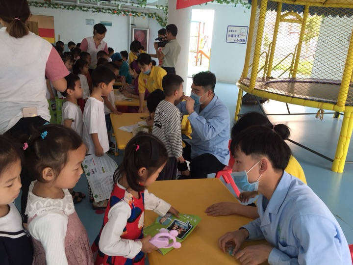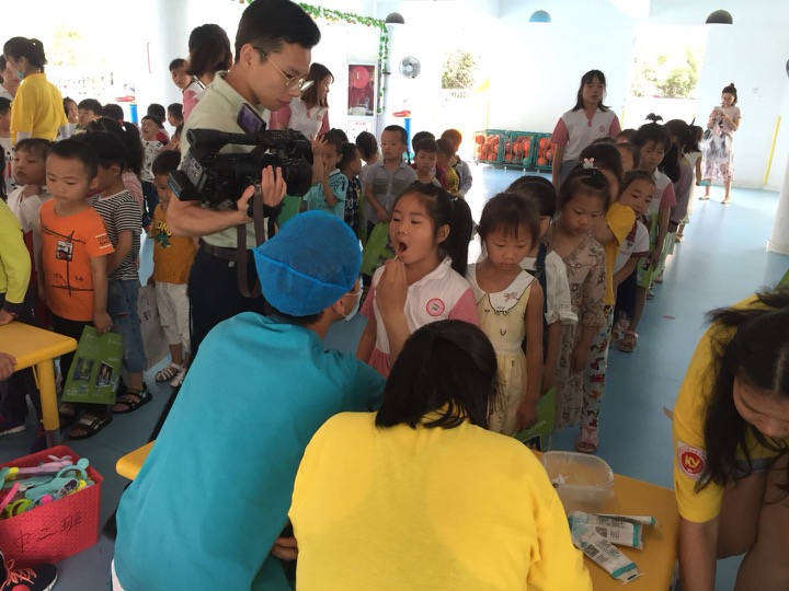 5月24日上午江西教育電視臺(tái)攜手江西衛(wèi)生職業(yè)學(xué)院口腔門診部義診團(tuán)隊(duì)來(lái)到我們迪斯尼象湖園,為中、大班的孩子們進(jìn)行口腔健康檢查,義診現(xiàn)場(chǎng),醫(yī)生們認(rèn)真的給每個(gè)孩子檢查齲齒、錯(cuò)合畸形、口腔衛(wèi)生等檢查,一邊給孩子們檢查的同時(shí),一邊提醒他們應(yīng)該怎樣注意口腔健康,并針對(duì)發(fā)現(xiàn)的問題逐個(gè)指導(dǎo)孩子做好日常保健,養(yǎng)成良好的口腔衛(wèi)生習(xí)慣,為孩子們建立口腔健康檔案。