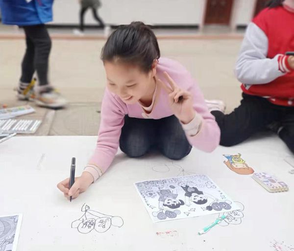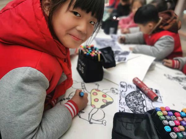 經(jīng)過近1個(gè)小時(shí)的集體創(chuàng)作,雪白的百米長卷已經(jīng)變成絢麗多姿的美麗畫卷,一幅幅栩栩如生的畫面躍然于畫布上。孩子們充分發(fā)揮自己的想象力,以線條和色彩充分地表達(dá)出對對學(xué)校、對新年和對藝術(shù)的熱愛之情,在七彩流光的韻律中,一張張絢麗的畫面,呈現(xiàn)出精彩瞬間。