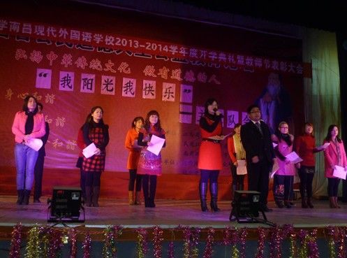 隊會在莊嚴的少先隊出旗曲中拉開序幕,少先隊隊歌《我們是共產(chǎn)主義接班人》響徹大廳。整個隊會采用互動形式,臺上臺下融匯一起,小學一至六年級的同學們在舞臺上用文藝形式表現(xiàn)出學校貫行“陽光教育”的主題,青年教師也著裝上臺朗讀,表達了爭做陽光教師的心聲,一曲《陽光總在風雨后》將教師團結(jié)合作,共建陽光和諧校園。