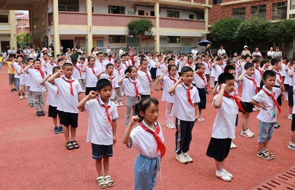 隊(duì)旗飄飄,融入我們的生命和血液;星星火炬,點(diǎn)燃信念的火,照亮心靈的燈。時(shí)逢建黨100周年,少先隊(duì)員激情似火。為了提升中國(guó)少年先鋒隊(duì)的凝聚力和影響力,引導(dǎo)廣大學(xué)生培養(yǎng)、形成積極向上的人生觀和價(jià)值觀,激發(fā)同學(xué)們?yōu)閷?shí)現(xiàn)中華民族的偉大復(fù)興而努力奮斗的熱情。6月8日上午,南昌現(xiàn)代外國(guó)語(yǔ)象湖學(xué)校隆重舉行“建黨百年迎華誕 入隊(duì)爭(zhēng)做好少年”為主題的一年級(jí)入隊(duì)儀式,150名一年級(jí)同學(xué)們光榮加入中國(guó)少年先鋒隊(duì)組織。