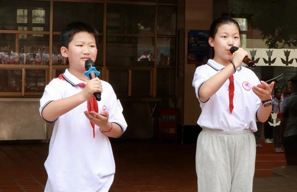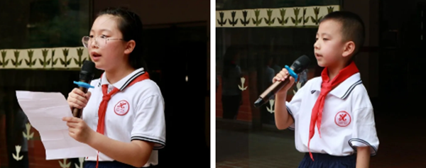 五年級(jí)老隊(duì)員代表張忞煜和一年級(jí)新隊(duì)員代表羅峻愷發(fā)言,他們表示,將以少先隊(duì)員的標(biāo)準(zhǔn)要求自己,爭(zhēng)取做一名優(yōu)秀的少先隊(duì)員,將用自己的實(shí)際行動(dòng),為紅領(lǐng)巾增光添彩!