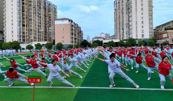 此次武術(shù)比賽所用的五步拳,配上《中國功夫》作為背景音樂,創(chuàng)編了一套屬于現(xiàn)外象湖學(xué)校自己的武術(shù)操,并融入到了大課間中,真正做到了傳統(tǒng)文化與學(xué)校體育的大融合。