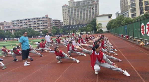 為了能在本次武術(shù)操比賽中取得佳績,全校18個班的班主任和體育教師帶領(lǐng)學(xué)生,利用大課間活動和課余時間加緊訓(xùn)練。有的班主任還犧牲休息時間,不怕天氣炎熱,和學(xué)生一起站在太陽下認真練習(xí)。從動作分解到整體練習(xí),扎扎實實地進行訓(xùn)練,努力做到精神飽滿、節(jié)奏準確、動作到位、隊列整齊,進出場有序。