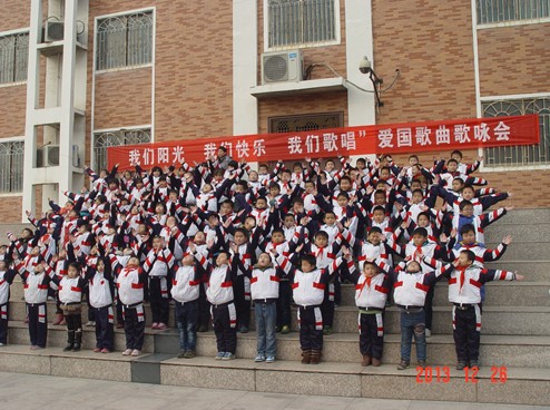 節(jié)目從大家的期望中開始,首先上場的是小學一年級6個班,歌曲是《盧溝謠》,小同學們嘹亮的歌聲和整齊的動作,引起了大家陣陣的掌聲。爾后接著是各年級的演唱,有唱《國旗國旗真美麗》,有唱《學習雷鋒好榜樣》,有唱《我們是共產主義接班人》等等。五(1)班演唱的《少年,少年,祖國的春天》還首次合奏了吹風琴,效果新穎,六(1)、六(4)班演唱的《國家》更是別出新意,三角形的隊伍中,黃色的葵花變幻出了紅心造型,紅心的中心是國旗,意喻“祖國在我心中”。六(2)、六(3)班的合唱《大中國》是壓軸節(jié)目,在演唱之中,“中國祝福您”五個大字被同學們高高舉起,表達了全校師生熱愛祖國、祝福祖國繁榮昌盛的赤子之心!