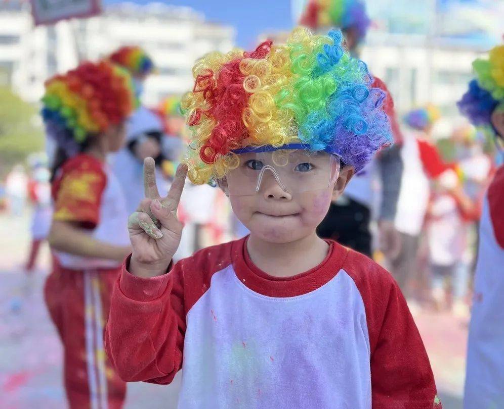 超燃彩虹跑過后,迎來集體彩虹大狂歡,孩子們與小伙伴們一同揮灑繽紛彩粉,共同感受“五彩”世界。