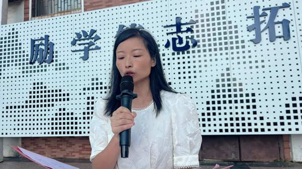 熊小琴老師呼吁大家:切莫以為只有生在亂世才能為國分憂,欲報國何須生于亂世,又何止在沙場上拼殺?熊老師說道:“親愛的同學們,我們是初開的鮮花,我們是初升的太陽,我們是民族的希望,我們的戰(zhàn)場便是這足下的土地,讓我們時刻謹記‘勿忘國恥 強我國防’,為中華之崛起而讀書! 為中華之騰飛而讀書!”