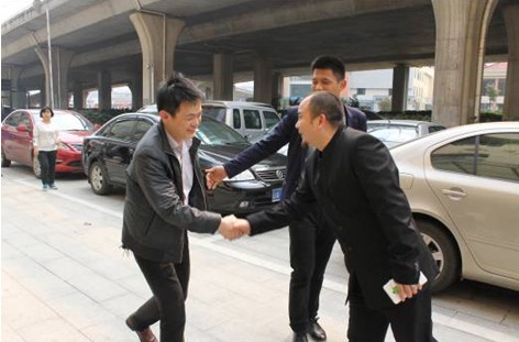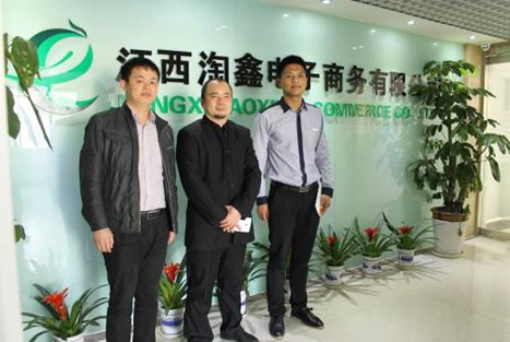 胡國輝一行受到江西淘鑫電子商務(wù)有限公司總經(jīng)理相梓午(右)的熱烈歡迎