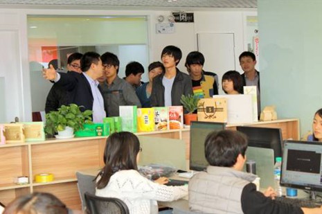 江西淘鑫總經(jīng)理相梓午對同學(xué)們的來訪表示歡迎。他在該公司會議室為胡院長和同學(xué)們介紹了江西淘鑫的發(fā)展歷史、現(xiàn)狀及淘寶·特色中國江西館的基本情況,并就電子商務(wù)現(xiàn)狀和前景展開交流。作為此次創(chuàng)業(yè)學(xué)院的學(xué)生代表,同學(xué)們也在交流過程中就學(xué)院開展的電子商務(wù)創(chuàng)業(yè)實踐中,如淘寶店鋪進貨、代銷、推廣等實際問題與相總進行交流和學(xué)習(xí),獲益良多。隨后,同學(xué)們在該公司人力資源部唐經(jīng)理的帶領(lǐng)下,參觀了淘鑫電子商務(wù)有限公司的各部門工作場所和江西特產(chǎn)展示臺。其間,同學(xué)們就淘寶·特色中國江西館的運營、推廣及研發(fā)與淘鑫主管人員進行了充分交流。