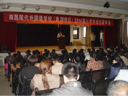 4月21日下午,南昌現(xiàn)代外國語學(xué)校(象湖校區(qū))在校報告廳召開了2014屆小學(xué)畢業(yè)生家長會