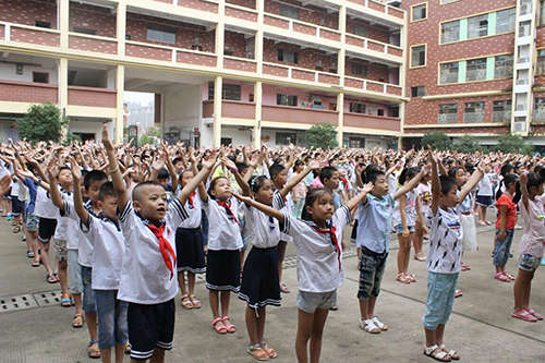 開學(xué)典禮上,在王桂紅主任的帶領(lǐng)下,全體學(xué)生莊嚴(yán)宣誓:愛國守法,明禮誠信、遵守公德、尊敬師長(zhǎng)、團(tuán)結(jié)同學(xué)、勤奮學(xué)習(xí)、快樂生活、全面發(fā)展。在響亮的宣誓聲中,不僅激發(fā)了全校學(xué)生的愛校熱情,同時(shí)也激發(fā)了同學(xué)們學(xué)習(xí)的使命感。
