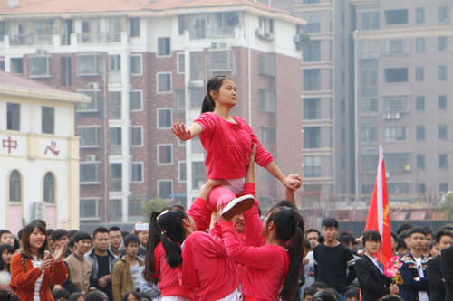 隨后,歌舞表演把開幕式的氣氛推向了高潮,同學(xué)們用動(dòng)感舞動(dòng)青春,引起全場的轟動(dòng)。