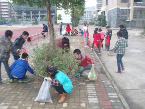 各班學(xué)生在班主任的帶領(lǐng)下,來(lái)到事先分配好的勞動(dòng)地點(diǎn),迅速地投入到了熱火朝天的勞動(dòng)中。校園內(nèi)到處都是老師和學(xué)生們忙碌的身影。他們手拿掃把、鐵鍬、火鉗、塑料袋、抹布、桶子等勞動(dòng)工具,積極參與勞動(dòng),大家不怕臟,不怕累,都埋頭奮力拔草,掃地,清理垃圾,擦洗扶梯……。同學(xué)們有的手上扎了小刺,有的被泥土弄臟了衣服和鞋子,有的流出汗水,但是沒(méi)有一個(gè)人叫苦喊累。經(jīng)過(guò)半個(gè)多小時(shí)的勞動(dòng),校園內(nèi)的綠化帶、小樹(shù)中的石塊兒、垃圾、枯葉以及校園內(nèi)衛(wèi)生死角得到了徹底的清理,到處煥然一新。