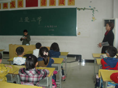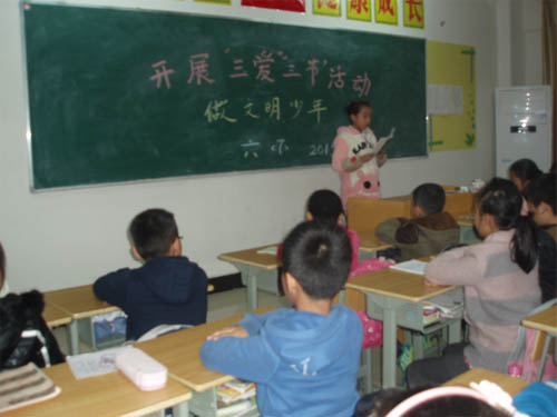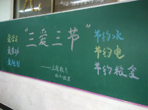 各班以班級為單位都開展了“三愛 三節(jié)”主題班會活動。活動形式多樣,有的以知識競答方式普及生活中的三愛三節(jié)知識,有的用多媒體播放愛學習、愛勞動、愛祖國的典型事例;有的以演講形式聯(lián)系身邊節(jié)水、節(jié)電、節(jié)糧的故事進行講解,闡述自己的收獲;有的制作手抄報反映自己對“三愛三節(jié)”的理解。