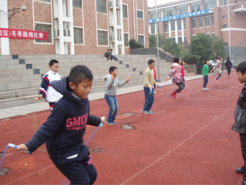 為更好地開(kāi)展冬季體育運(yùn)動(dòng),增強(qiáng)學(xué)生的體質(zhì),培養(yǎng)學(xué)生團(tuán)結(jié)、拼搏的精神,12月23日,南昌現(xiàn)代外國(guó)語(yǔ)學(xué)校(象湖校區(qū))舉行了一場(chǎng)緊張、激烈的跳繩比賽。操場(chǎng)上一片歡騰景象,一根根彩繩、一個(gè)個(gè)純真的笑臉在燦爛的陽(yáng)光下飛舞、綻放?!案骶透魑?,預(yù)備——跳?!薄班赅赅辍崩K子不斷拍打地面,啦啦隊(duì)更是不甘示弱,喊得一陣比一陣響,喊得一陣比一陣亮。這次跳繩比賽凝聚了老師,同學(xué)的熱情。比賽前,為集體爭(zhēng)光的堅(jiān)強(qiáng)信念每天激勵(lì)著同學(xué)們努力練習(xí),你追我趕,積極備戰(zhàn)。比賽中,各個(gè)同學(xué)精神抖擻,信心十足,賽場(chǎng)上龍騰虎躍,身手不凡。最終由四(7)班的鄔梓賢與六(2)的徐宇豪分別以一分鐘雙腳跳216與210的好成績(jī)共同獲得一等獎(jiǎng)。