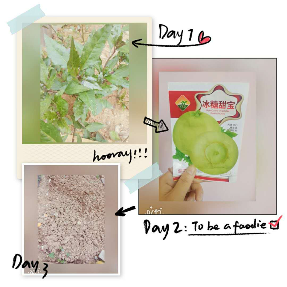 孩子們來到自己的種植園地,看見種植園里的雜草和干枯的菜根,一個個變成了“小農(nóng)民”,拉起袖口,彎下身子,認真地拔了起來。一轉(zhuǎn)眼功夫,種植園的兩塊地很快就處理干凈了。接著,經(jīng)過短暫的討論后,孩子們就確定方案開始動手種植了。鞋子臟了,臉上有泥巴了,額頭上有汗水了,孩子們?nèi)珌聿活?,還是全神貫注地種著自己的菜苗、種子?!袄蠋煟曳N的黃瓜什么時候能發(fā)芽呀?”“我的茄子,一定會長的很大”“我的菜菜長大了就給大家吃,這可是綠色蔬菜哦!”孩子們邊種植,邊七嘴八舌議論著,臉上神采奕奕,眼里充滿了期待。