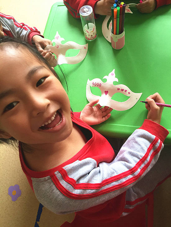 這是來自大一班的小美眉畫的面具哦!看她笑的多開心,我想你會是畫得最好看的那一個哦~