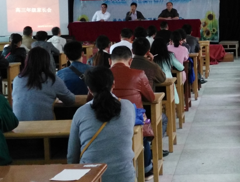 上午9:30,高三年級(jí)家長(zhǎng)會(huì)在圖書(shū)館三樓準(zhǔn)時(shí)召開(kāi),參加會(huì)議的有學(xué)校楊校長(zhǎng)、高中部教務(wù)處徐成主任、政教處陶華主任、年級(jí)組長(zhǎng)吳濤老師以及高三班主任。家長(zhǎng)會(huì)上,徐成主任就高考報(bào)名工作事宜對(duì)所有家長(zhǎng)做了詳細(xì)的說(shuō)明;陶華主任就學(xué)生教育問(wèn)題做了主題發(fā)言;最后,楊校長(zhǎng)總結(jié)了學(xué)校工作中取得的成效,向家長(zhǎng)分享家庭教育的一些經(jīng)驗(yàn),并祝愿這屆高三的學(xué)生在明年的高考中取得好績(jī),家長(zhǎng)會(huì)現(xiàn)場(chǎng)氣氛異常熱烈。