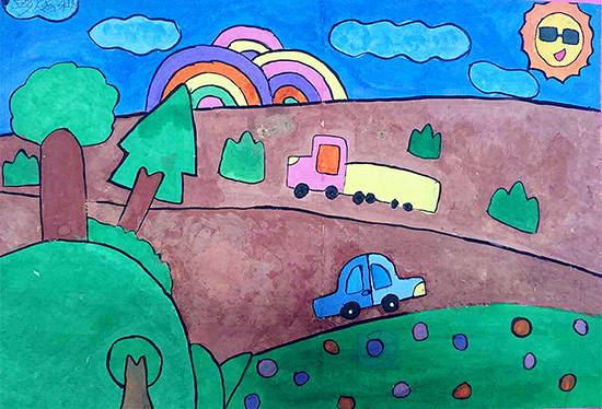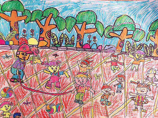 比賽現(xiàn)場氣氛熱烈,孩子們熱情高漲。孩子們經(jīng)過認真的構(gòu)思后,紛紛拿起畫筆,仔細的描繪與涂彩。一個多小時后,一幅幅充滿童趣、充滿活力的畫誕生了。孩子們的繪畫作品內(nèi)容豐富,形式多樣。有描繪學校的,有表現(xiàn)體育活動的,還有反映戶外郊游的……作品構(gòu)思巧妙、色彩鮮艷。