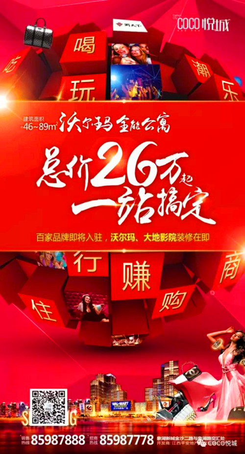 象湖沃爾瑪-COCO悅城購物中心項目定位于時尚、品位、家庭、體驗購物中心,集大型超市、國際影院、大型情景室內(nèi)特色餐飲街、兒童教育親子體驗娛樂和大型室內(nèi)情景潮流生活館為一體,通過打造昌南“時尚地標(biāo)”、 “吃喝玩樂聚集地”、“全品牌系列生活館”、“休閑娛樂首選地”,樹立高品質(zhì)城市時尚生活新標(biāo)志??們r26萬起全能公寓,吃喝玩樂購全能共享家!百家品牌即將入駐,沃爾瑪目前裝修在即。你,還等什么呢?