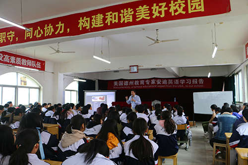 為了營造趣味教學的氛圍,增強學生學習英語積極性,讓學生學會如何輕松學英語,3月14日上午,南昌現(xiàn)代外國語學校(迎賓校區(qū))邀請到了美國德州休斯頓北地中學國際教育專家安迪老師,來校為初高中基礎年級200多名學生授課。安迪老師有著豐富的教學經(jīng)歷和實踐經(jīng)驗,深受廣大學生的喜愛。