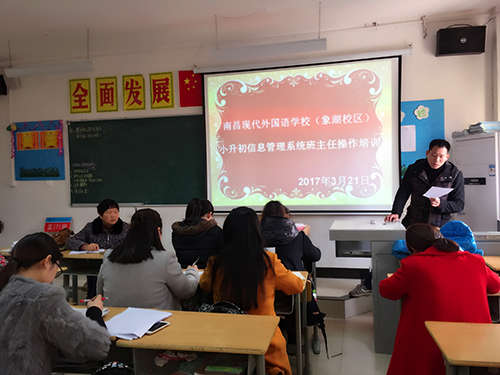 為進一步落實2017年南昌城區(qū)小升初報名暨信息采集工作會議精神,更好地開展2017年南昌市小升初報名暨網(wǎng)上信息采集工作,3月21日,南昌現(xiàn)代外國語學(xué)校(象湖校區(qū))在參加青云譜區(qū)召開2017年小升初工作布置會的第二天,組織六年級班主任召開小升初信息采集工作培訓(xùn)會。