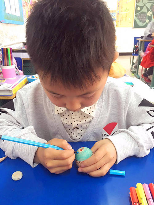 “繪彩蛋”是孩子們最喜歡的活動之一。美術課上,老師們介紹了清明節(jié)的來歷、風俗習慣和紀念意義,讓學生增長歷史知識,并結合美術教學,指導學生繪彩蛋,學習彩蛋藝術。孩子們興致勃勃地在各自帶來的熟雞蛋上作畫,他們用靈巧的雙手把一個個雞蛋描繪成五顏六色、創(chuàng)意豐富的彩蛋作品,美麗的圖案象征著圓圓滿滿,充分體驗傳統(tǒng)民俗樂趣。