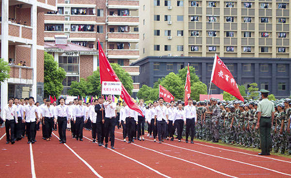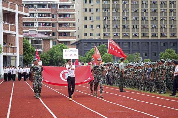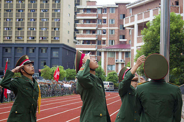 伴隨著莊嚴(yán)的國歌聲,五星紅旗冉冉升起,在操場上空迎風(fēng)飄揚(yáng)。隨后是全校軍訓(xùn)新生分批進(jìn)行隊(duì)列匯報(bào)表演,統(tǒng)一的迷彩裝,整齊的步伐,體現(xiàn)了工商新生在新學(xué)期飽滿的熱情和積極的態(tài)度。院長劉明初走到學(xué)生方隊(duì)中進(jìn)行檢閱。一句句嘹亮的口號聲響徹云霄,一組組方陣從主席臺前經(jīng)過,同學(xué)們個(gè)個(gè)精神飽滿,軍姿挺拔,在教官的帶領(lǐng)下邁著整齊的步伐昂向前,出色的表現(xiàn)不時(shí)贏得現(xiàn)場領(lǐng)導(dǎo)和老師的陣陣掌聲。