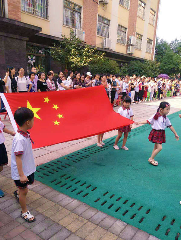 活動由兩部分組成,第一部分為各班級為祖國媽媽唱紅歌比賽,當一切準備就緒,中班以及大班的孩子隊列整齊,踏步進場。主持人段老師像大家介紹了今天的活動主題,接著楊園長為孩子們送上了節(jié)日祝福。在慷慨激昂的進行曲襯托下,可愛的小護旗手,走著正步向大家走來,并進行了莊重的升旗儀式,國歌聲中,孩子們個個直立,行注目禮,高唱國歌。第二部分是中秋美食分享會,活動前各班家長都制作出了品種多樣、味道鮮美的食品。各種美食琳瑯滿目,有蛋撻、果凍布丁、蔬菜沙拉、水果拼盤、可樂雞翅、啤酒燒鴨、小豬肉包、韓國壽司等,色香味俱全。食材的準備都來自班里的家長,大家可以憑著美食券到各個美食坊挑選自己喜歡的食物進行品嘗。