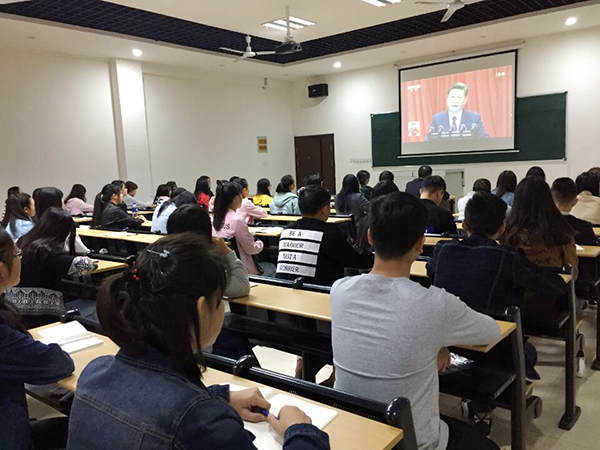 習(xí)近平總書記從“過去五年的工作和歷史性變革”、“新時(shí)代中國(guó)共產(chǎn)黨的歷史使命”、“新時(shí)代中國(guó)特色社會(huì)主義思想和基本方略”、“決勝全面建成小康社會(huì),開啟全面建設(shè)社會(huì)主義現(xiàn)代化國(guó)家新征程”、“貫徹新發(fā)展理念,建設(shè)現(xiàn)代化經(jīng)濟(jì)體系”、“健全人民當(dāng)家作主制度體系,發(fā)展社會(huì)主義民主政治”、“堅(jiān)定文化自信,推動(dòng)社會(huì)主義文化繁榮興盛”等十三個(gè)方面做了重要報(bào)告。報(bào)告中關(guān)于教育與民生的內(nèi)容,受到廣大師生的關(guān)注。如“推動(dòng)城鄉(xiāng)義務(wù)教育一體化發(fā)展,高度重視農(nóng)村義務(wù)教育,辦好學(xué)前教育、特殊教育和網(wǎng)絡(luò)教育,普及高中階段教育,努力讓每個(gè)孩子都能享有公平而有質(zhì)量的教育。完善職業(yè)教育和培訓(xùn)體系,深化產(chǎn)教融合、校企合作。加快一流大學(xué)和一流學(xué)科建設(shè),實(shí)現(xiàn)高等教育內(nèi)涵式發(fā)展。健全學(xué)生資助制度,使絕大多數(shù)城鄉(xiāng)新增勞動(dòng)力接受高中階段教育、更多接受高等教育。支持和規(guī)范社會(huì)力量興辦教育。加強(qiáng)師德師風(fēng)建設(shè),培養(yǎng)高素質(zhì)教師隊(duì)伍,倡導(dǎo)全社會(huì)尊師重教。辦好繼續(xù)教育,加快建設(shè)學(xué)習(xí)型社會(huì),大力提高國(guó)民素質(zhì)。”在師生中引起廣泛共鳴,深切感受到習(xí)近平總書記對(duì)民生的關(guān)注,對(duì)教育的關(guān)心,對(duì)師生的關(guān)懷,對(duì)助學(xué)的支持。