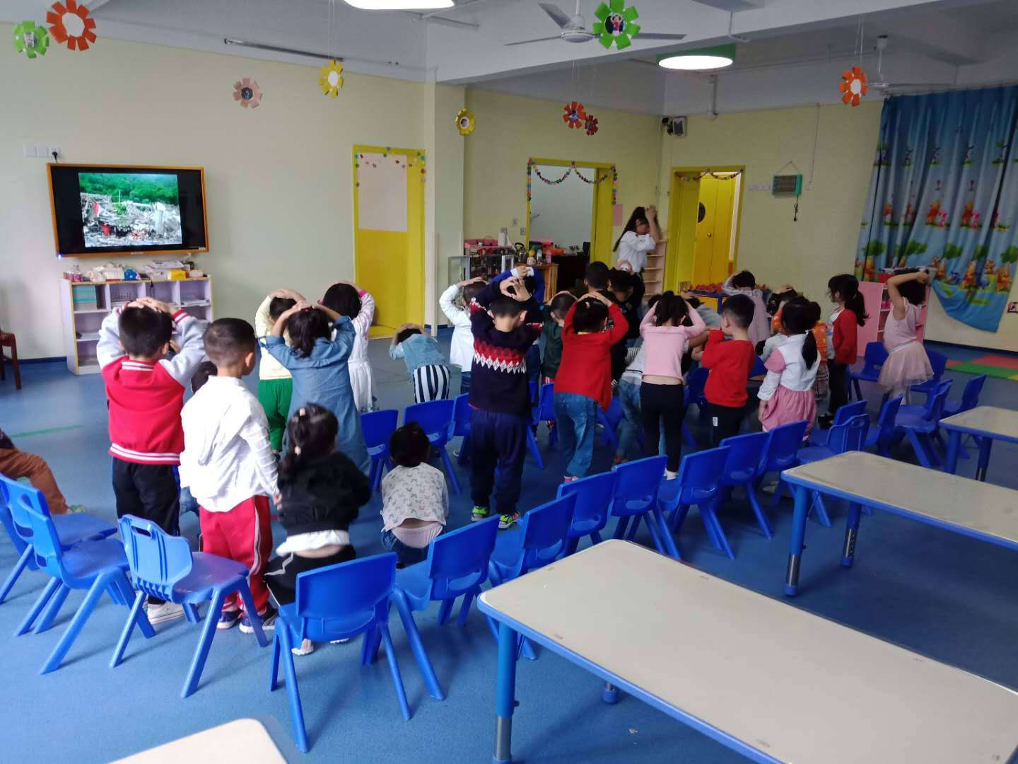 演練前,各班教師組織幼兒園學(xué)習(xí)防震知識和練習(xí)疏散動作,進(jìn)一步加強(qiáng)了有關(guān)地震知識和演練安全知識教育。