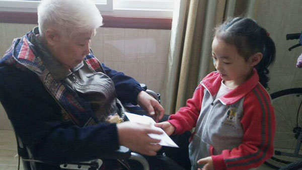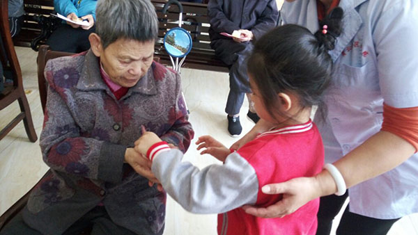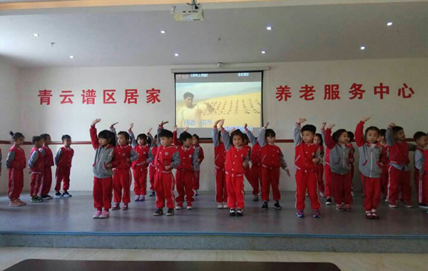在敬老院里,孩子們給爺爺奶奶表演了準備已久的三字經(jīng)、武術(shù)、手語感恩的心等表演節(jié)目,稚嫩的童音、活潑可愛的表演贏得了敬老院老人們的陣陣掌聲、笑聲。在老人的歡聲笑語中孩子們走到爺爺奶奶的身邊,給他們送去自己親手制作的賀卡以及家長親自做的糕點,還幫爺爺奶奶們捶背、揉肩,原本寂靜的老人院成了歡樂的海洋,爺爺奶奶們的臉上露出了幸福的笑容。最后小朋友們跟爺爺奶奶依依惜別的場面真是令人感動。