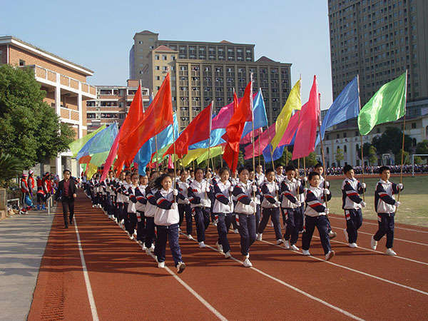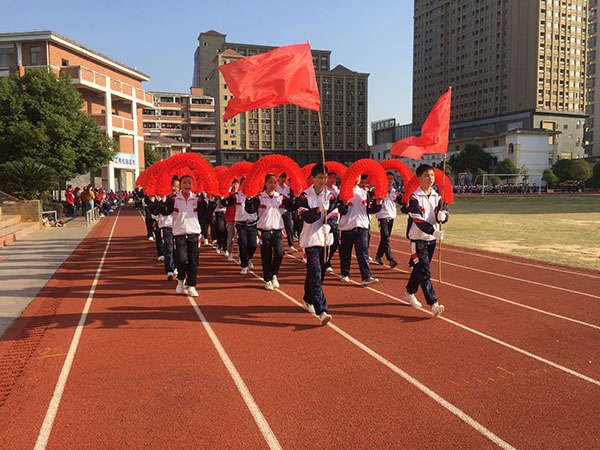 比賽結(jié)束后,李金玉校長(zhǎng)致辭。他代表學(xué)校對(duì)運(yùn)動(dòng)會(huì)的順利舉行表示熱烈祝賀,對(duì)為大會(huì)的召開而辛勤工作、精心準(zhǔn)備、做出貢獻(xiàn)的老師、同學(xué)表示誠(chéng)摯的謝意。同時(shí)也向本次大會(huì)的裁判員、教練員、運(yùn)動(dòng)員表示崇高的敬意!李校長(zhǎng)從習(xí)總書記的體育強(qiáng)國(guó)夢(mèng)講起,希望同學(xué)們通過(guò)運(yùn)動(dòng)會(huì),從體育活動(dòng)中感知體育的魅力,強(qiáng)健體魄,將青春與活力在賽場(chǎng)上釋放,也希望開展陽(yáng)光體育活動(dòng),能讓學(xué)生牢固樹立終身鍛煉的體育健康理念,走進(jìn)陽(yáng)光,走進(jìn)操場(chǎng),走進(jìn)自然,實(shí)現(xiàn)“每天鍛煉一小時(shí),健康工作五十年,幸福生活一輩子”的美好愿望,奏響生命的最強(qiáng)音。最后,李校長(zhǎng)從四個(gè)方面,對(duì)全校師生、運(yùn)動(dòng)員提出了相關(guān)要求。運(yùn)動(dòng)員代表胡雅瓊、裁判員代表糜霞依次在國(guó)旗下莊嚴(yán)宣誓。
