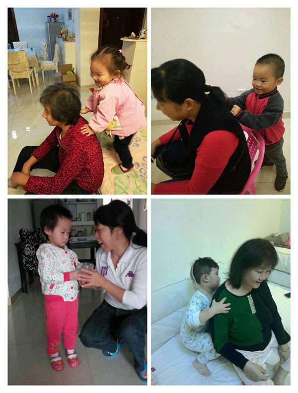 大班的小朋友們親手制作了壽字卡片,有的班級(jí)則是讓小朋友寫完壽字然后讓老師擺在地上,擺出壽字或者扇子的形狀;中班的小朋友則親手剪了壽桃卡片,老師在紙上畫好壽桃并叫小朋友把壽桃剪下來(lái),最后由老師把壽桃黏在教室后面的展板上;小班的小朋友們師的組織下,回家給爺爺奶奶捶腿、捶背、捏肩、洗腳,引得爺爺奶奶們一陣歡笑。