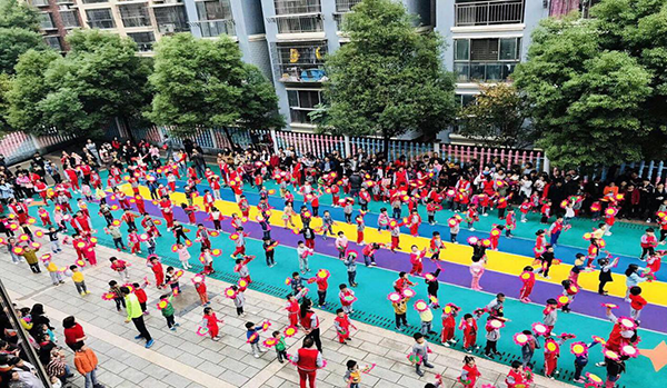 教師、小朋友分別進(jìn)行了精彩的開場舞表演。楊園長宣布春季親子運(yùn)動會開始。