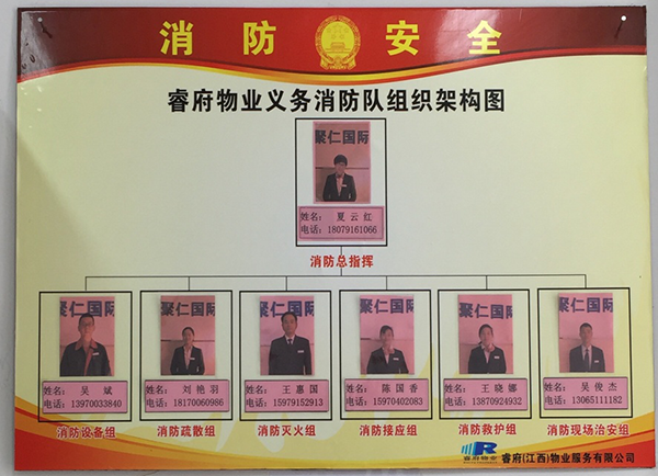 本月為提高全員消防意識,同時配合南昌市高新區(qū)“關注消防,平安你我”的“119”消防宣傳月活動,睿府物業(yè)聚仁國際項目成立了以總經(jīng)理夏云紅為總指揮的睿府物業(yè)義務消防隊,并開展“增強全民消防意識,提高自防自救能力”為主題的消防宣傳活動。