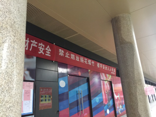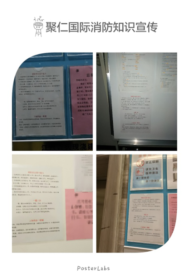 對客戶和業(yè)主開展以“認識火災、學會逃生、主動防范、保障安全”為主要內(nèi)容的安全教育,在聚仁國際綜合樓、6號樓大樓門口張貼宣傳標語,并且聯(lián)系媒體在大堂電子屏滾動播放消防宣傳視頻。