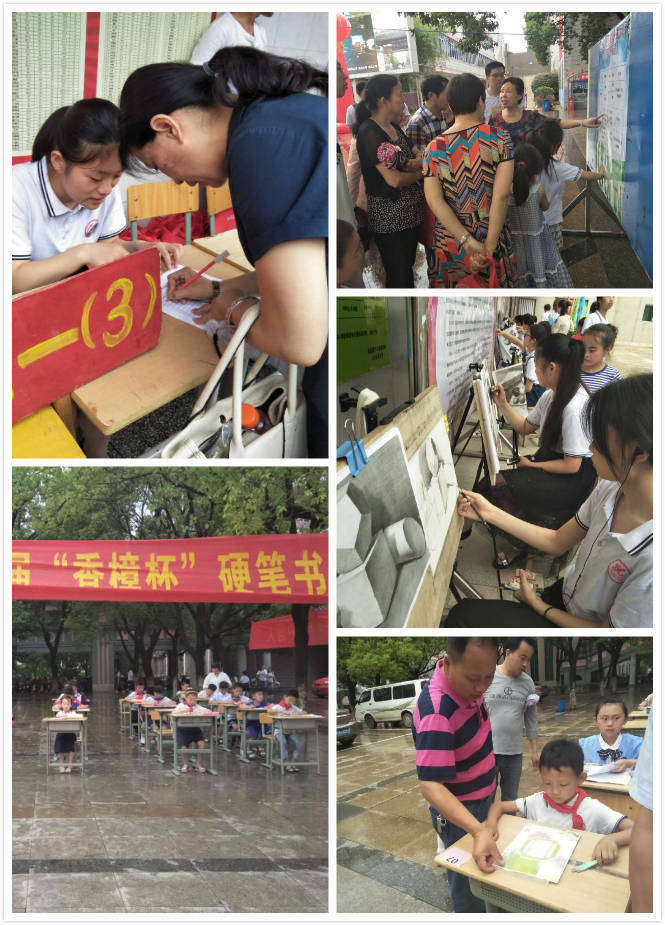 教學(xué)樓后的林蔭操場,年輕的媽媽俯身欣賞女兒的書法創(chuàng)作,年輕的爸爸凝神賞視兒子的作品,那眉宇之間是難以言說的情意。