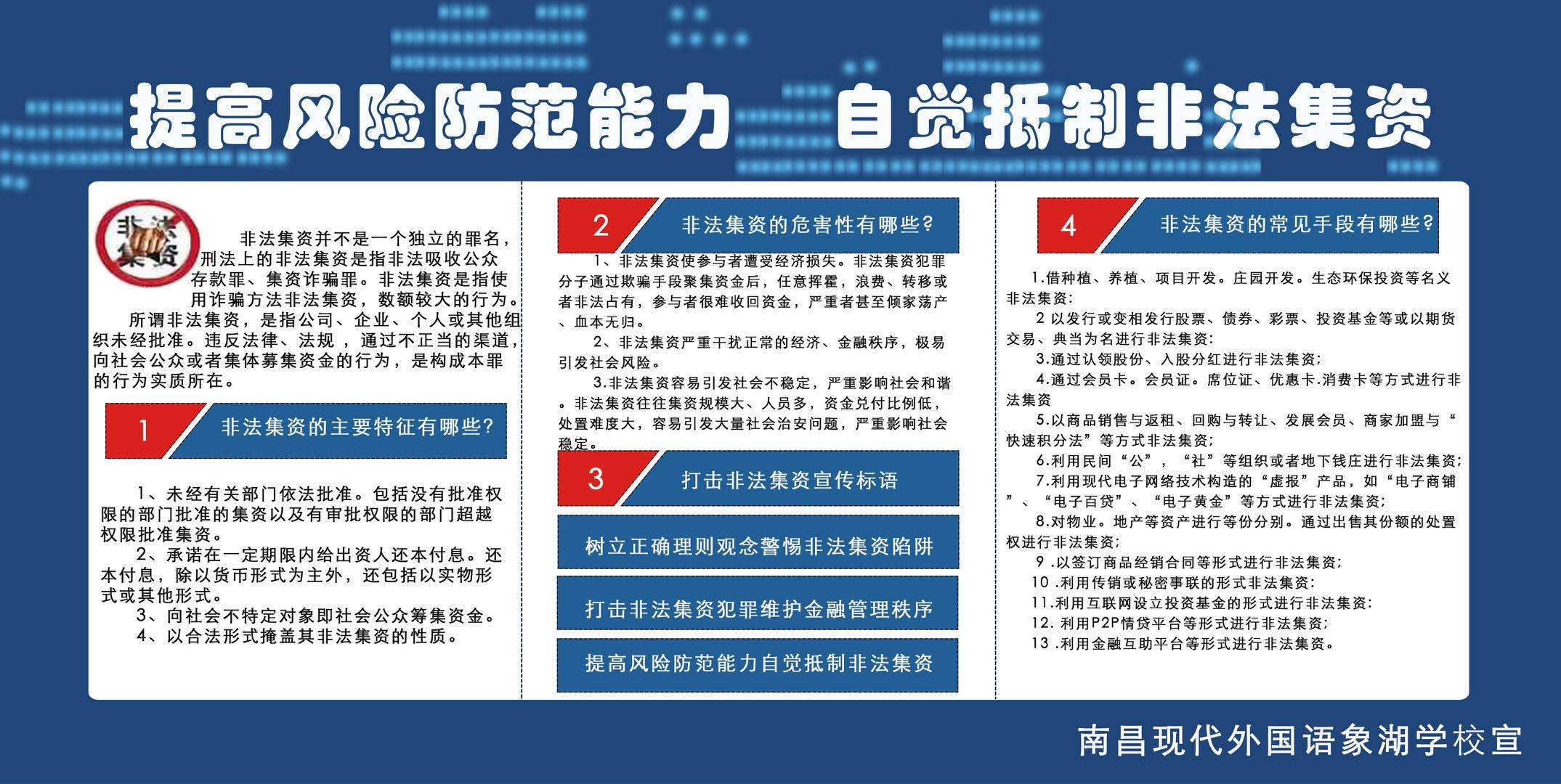 根據《南昌市2018年防范和打擊非法集資宣傳月活動實施方案》要求,以保護人民群眾切身利益、維護社會穩(wěn)定為出發(fā)點,提高社會公眾對非法集資的識別能力,教育人民群眾增強風險防范意識,培養(yǎng)正確的投資理念,營造防范打擊非法集資的良好輿論氛圍,震懾犯罪分子,并以此擴大宣傳教育覆蓋面,增強宣傳效果,我校特開展防范和打擊非法集資宣傳教育進校園活動。