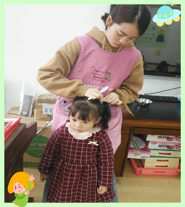 下午2:30老師們正在給午睡后的女孩子梳頭發(fā),小模樣可愛極了。