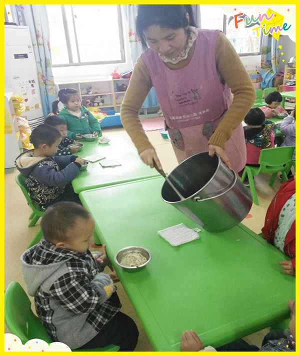 孩子們吃過點心后愉快的游戲去了,剩下老師勤勞的身影。