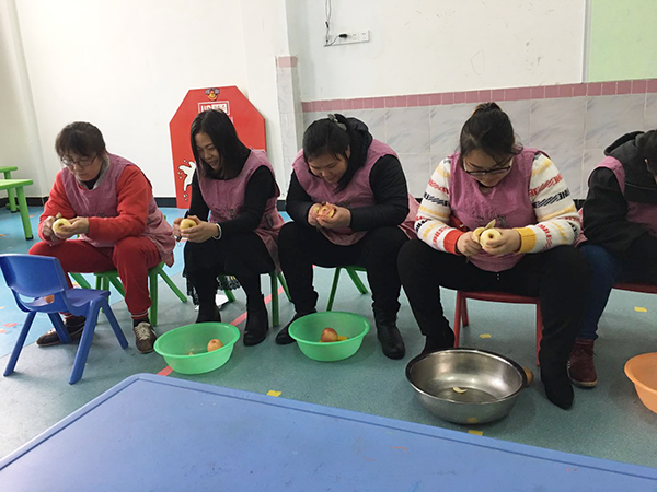 活動(dòng)前保教主任向保育老師宣布了比賽規(guī)則和評(píng)分標(biāo)準(zhǔn)。比賽共分為三個(gè)部分,分別為:知識(shí)問(wèn)答、削蘋果、套疊被子。保育老師們個(gè)個(gè)積極認(rèn)真,努力在比賽中把自己最好的水平展示給大家。