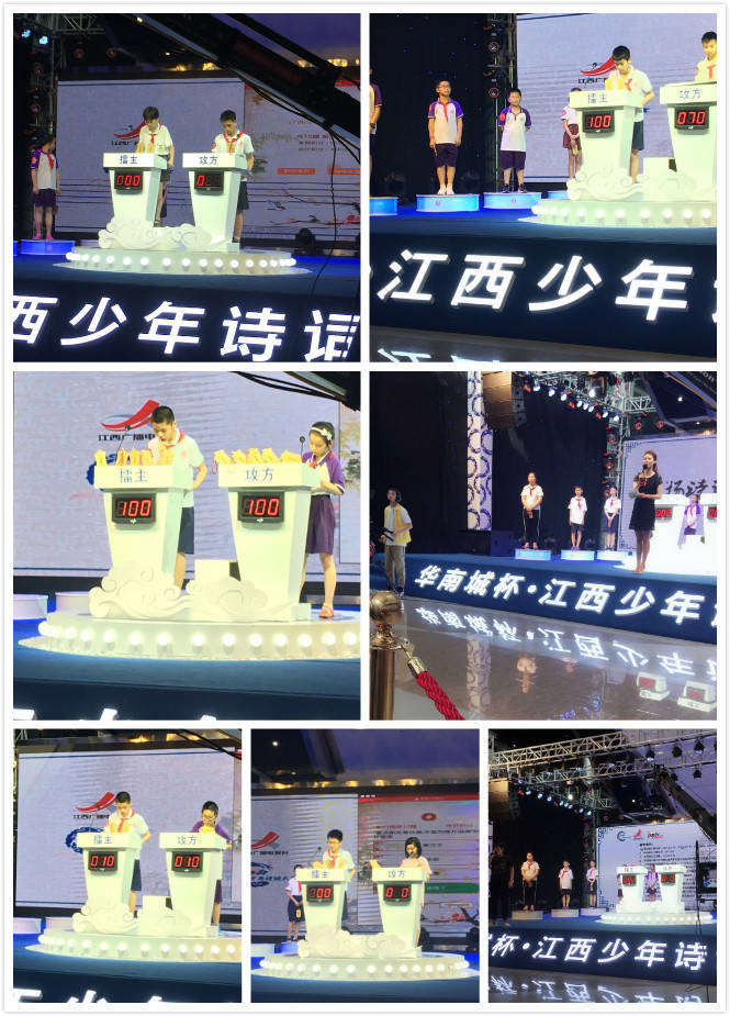 “弘揚詩詞文化,感受江西魅力”是由江西網(wǎng)絡(luò)廣播電視臺、江西省詩詞學會、南昌華南城共同舉辦的華南城杯·2018江西少年詩詞大會(第二季)的主題。本次大會題庫豐富且具有獨特性,由近百名語文教學工作者和詩詞專家選取近5000首詩詞,且與江西地域、人文相關(guān),并融入了部分近代詩詞作品。參賽單位是南昌市14所知名學校,師大、南大、交大附小,育新、向榮、郵政路學校,還有我們南昌現(xiàn)代外國語象湖等14所學校。我校采取分班級、年級竟選的方式推薦選手,經(jīng)過前期激烈角逐,最終十位同學過關(guān)斬將,被選為參賽選手。這十位同學分別是:六(1)班的楊洲、徐慧、劉加,六(2)班的鐘昊、李子璇、付子欣,六(4)班的蔣博文、朱樂群,六(5)班的劉晨、章浩。