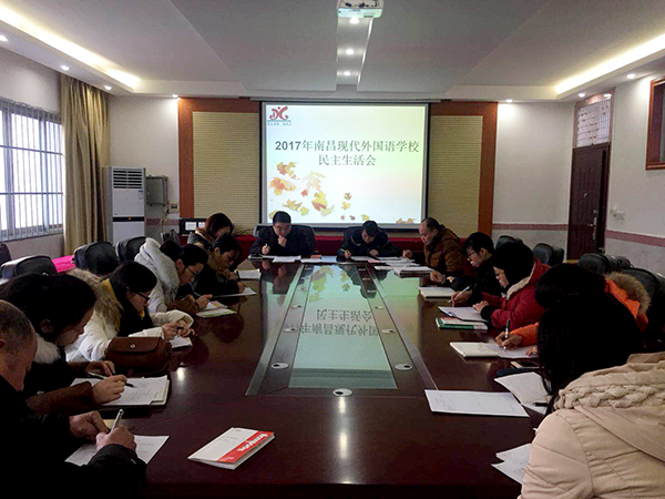 南昌現(xiàn)代外國語學(xué)校(迎賓校區(qū))黨支部全體黨員于2018年1月30日下午4點40分在行政樓二樓會議室召開“批評與自我批評”民主生活會,此次會議由學(xué)校工會主席陳慶華主持,校長楊端煌、黨支部書記鄧華蒞臨本次會議。