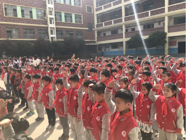 為激發(fā)少先隊員們的榮譽感和自豪感,鼓勵學生爭做優(yōu)秀少先隊員,3月28日,南昌現(xiàn)代外國語象湖學校在大隊輔導員謝珊珊老師的帶領下,全體一年級同學懷揣著激動的心情來到操場上,參加隆重的少先隊入隊儀式。