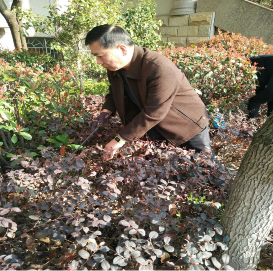 傅江海副書記在綠化帶中清掃垃圾